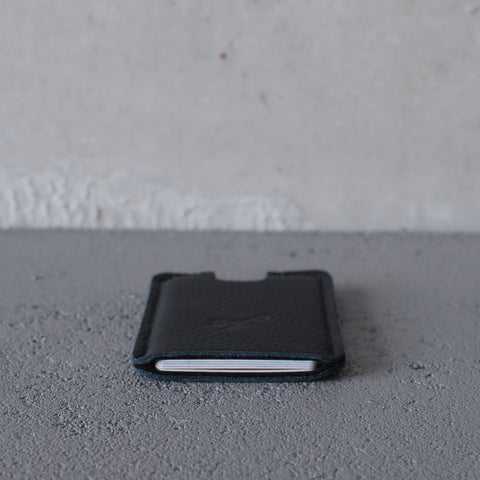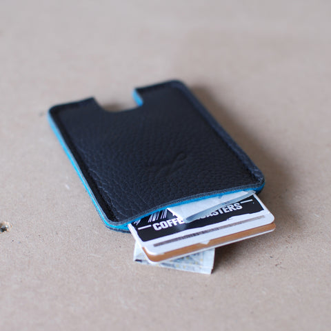 Since it’s made out of real cow hide the sleeve can be a bit uneven and that’s what gives it a really nice look. The design fits the cards perfectly. We designed it for up to 6 cards and some paper money. And the best thing, throw in your office access card, public transportation card or any other RFID card and it works right through the wallet, no need to get it out.
